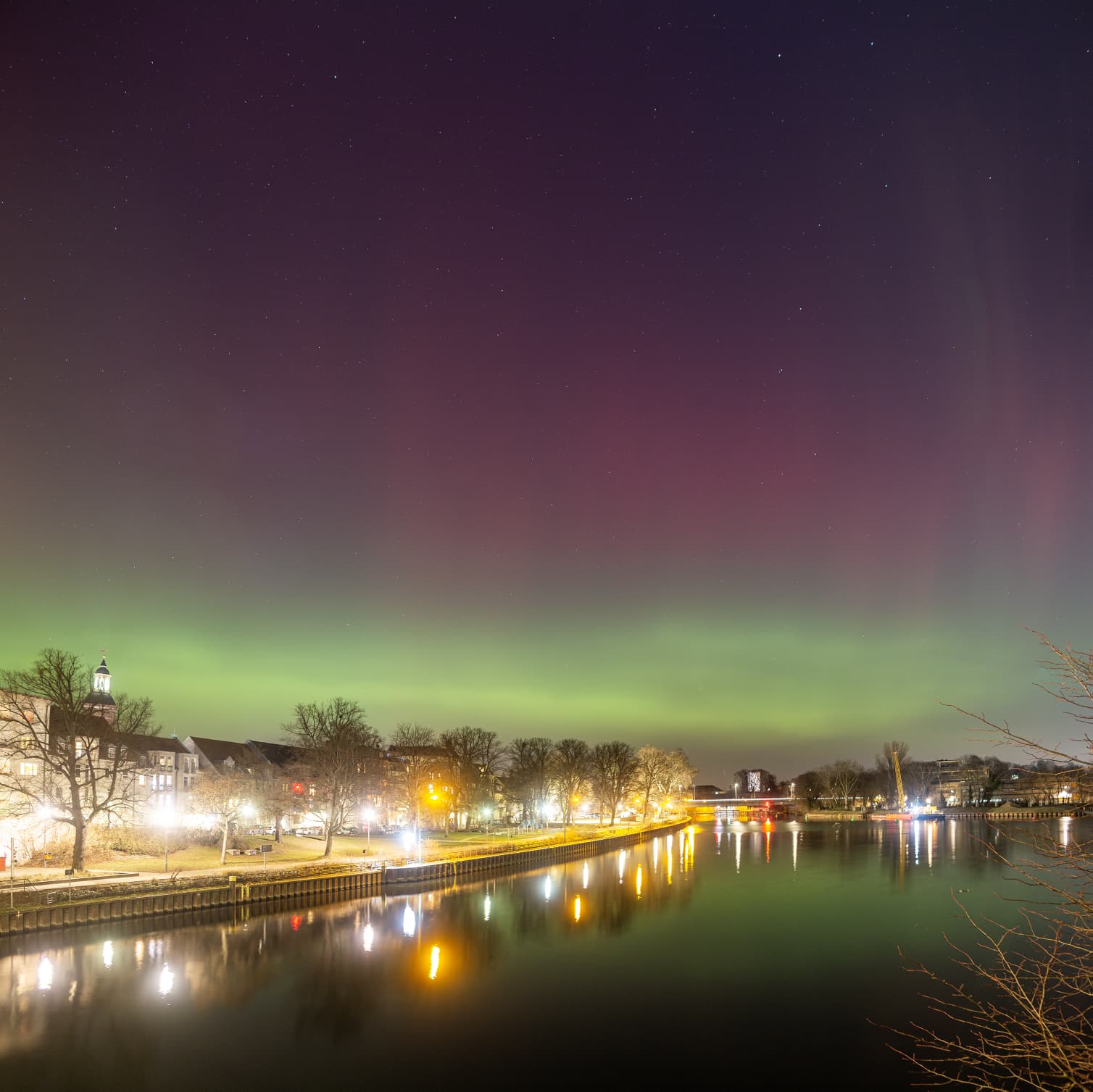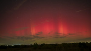 Un alt aspect remarcabil al acestei furtuni geomagnetice a fost apariția aurorei generate de protoni, distinctă de aurora clasică produsă de electroni. Acest tip de auroră este asociat, în general, cu furtuni geomagnetice intense, iar pe parcursul acestui eveniment vizibilitatea sa a fost deosebit de bună. Fenomenul s-a manifestat pe intervale scurte de timp, sub forma unor perdele aurorale verzi intense, evidențiindu-se clar pe fondul unei aurore clasice de intensitate mai redusă.