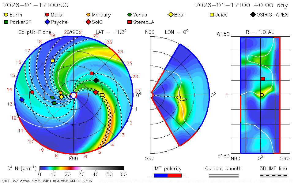 Deoarece ne aflam încă în partea de „șoc” a ejecției, era clar că valoarea de 90 nT nu putea fi menținută pe termen lung. Cu toate acestea, câmpul magnetic total a rămas la valori ridicate, de aproximativ 30–40 nT, având o orientare preponderent negativă (linia roșie din graficul de mai sus, corespunzătoare indicelui Bz).