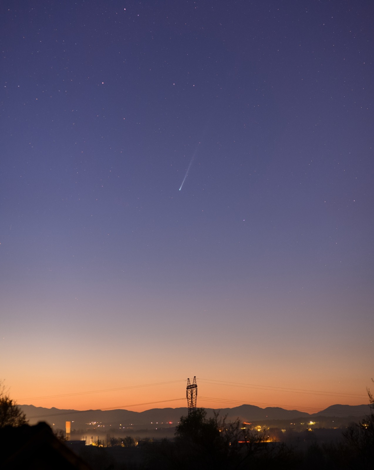 În acest moment, cometa are mag. +5, dezvoltând o coadă de gaz spectaculoasă. Aceasta a fost surprinsă de colegul nostru Mociran Andrei-Eduard de lângă Baia Mare, în data de 11 aprilie.
