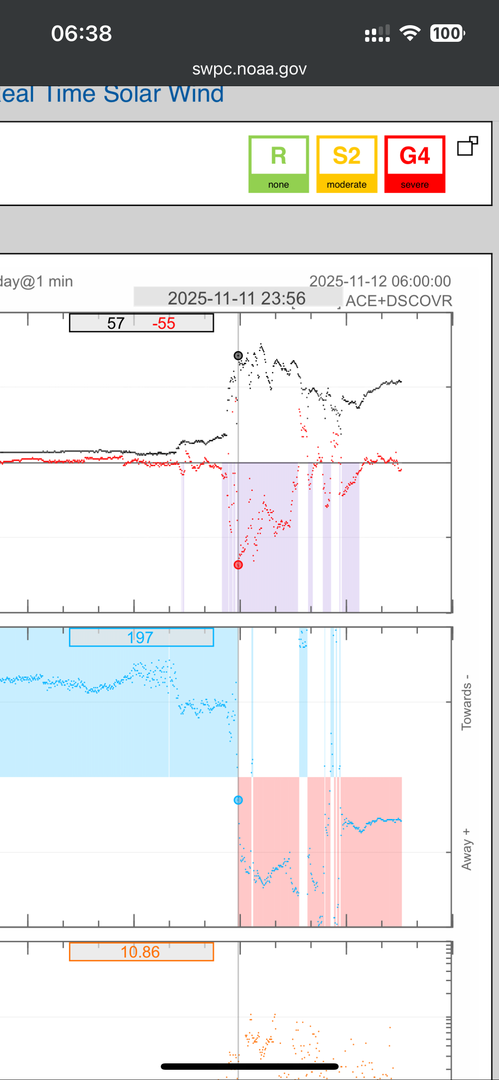 Supriza azi-noapte, ejectia asociata eruptiei X1.7 de acum 3 zile a sosit in jurul orei 2, aceasta fiind extrem de puternica, ducand la o furtuna geomagnetica G4 pentru scurt timp.