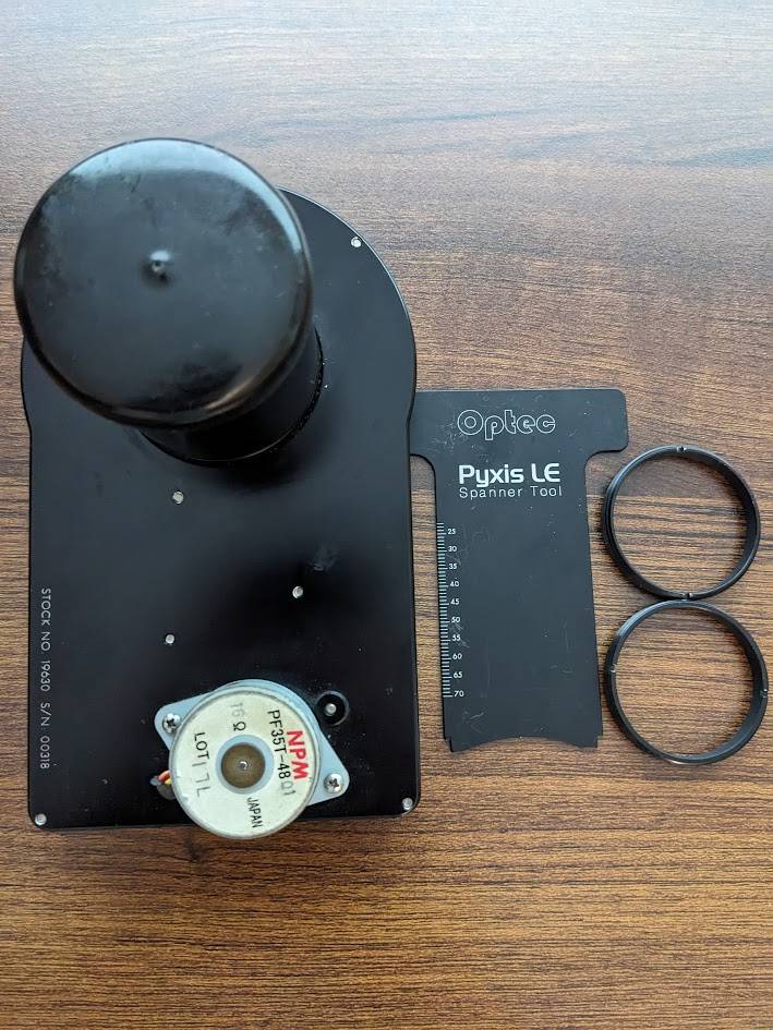 Se vinde impreuna cu doua inele de prindere lentile focal reducer. (#19631 Pyxis LE Retainer Kit for 43mm optics).