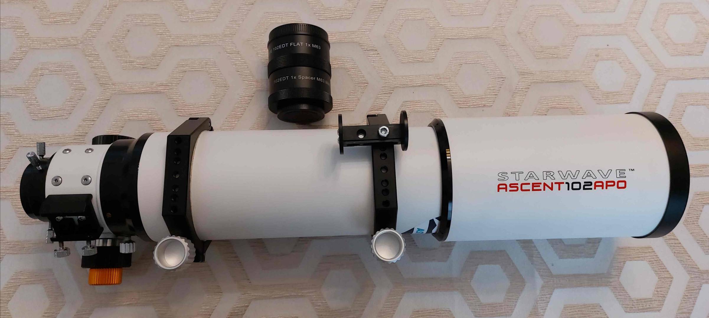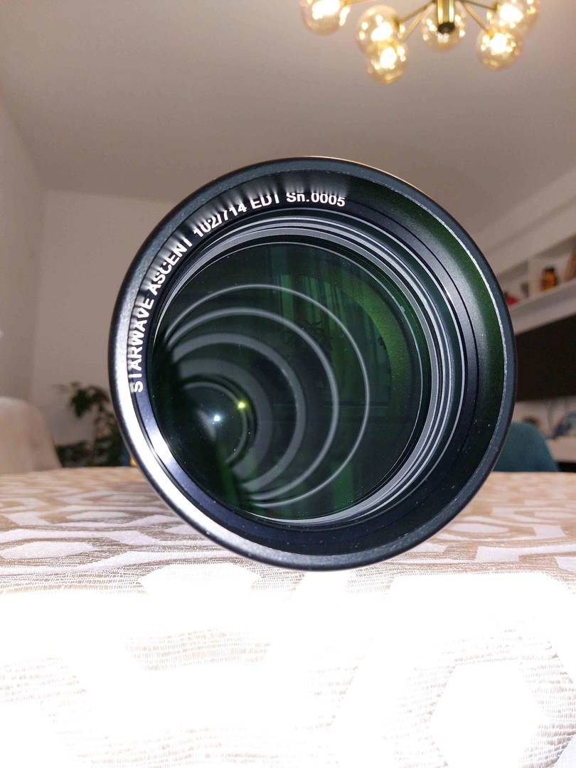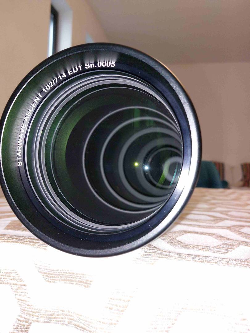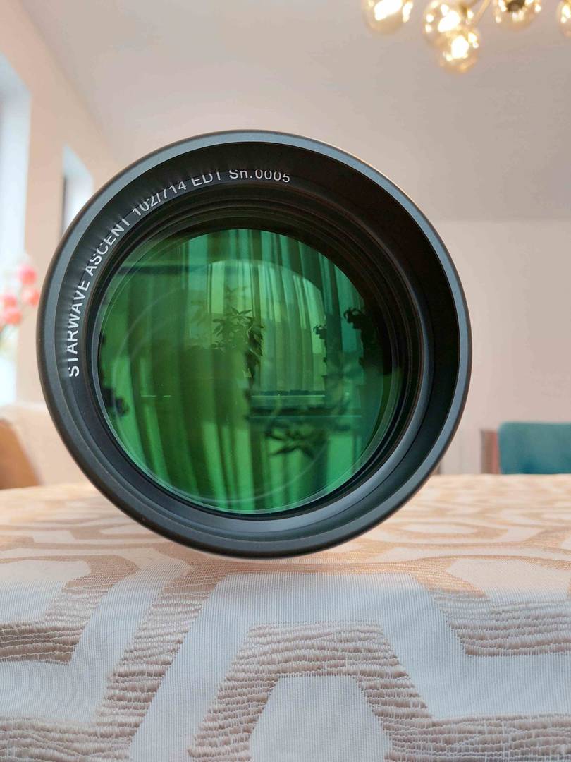 Vând un refractor Altair Astro Starwave Ascent, triplet, de 102mm diametru si cu focala de 714mm (F7). Telescopul conține un element din sticla FCD100 din categoria SD (dispersie foarte scăzută, asemănătoare cu FPL53 și cu fluorita).