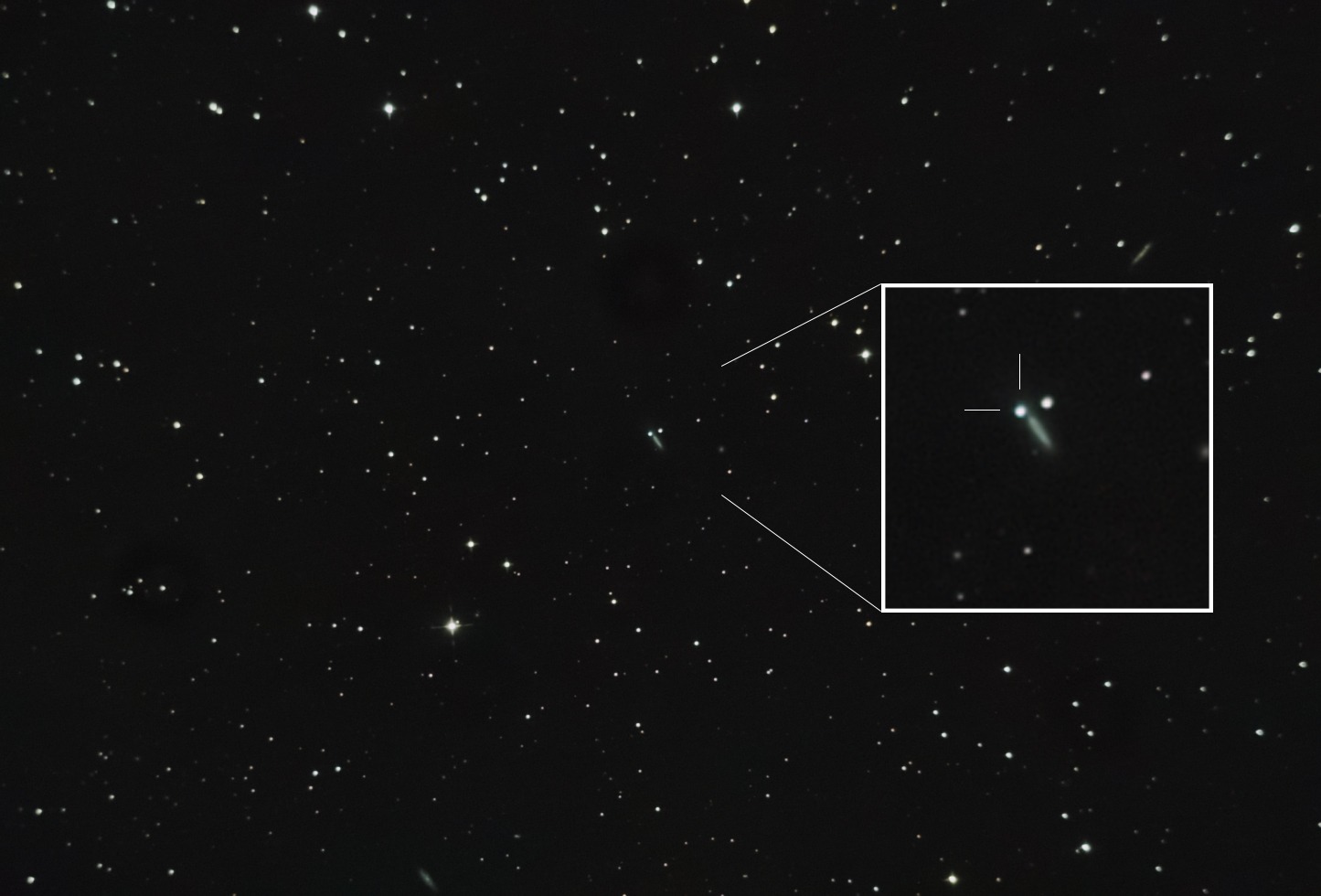 Bineînțeles că Nick a și fotografiat această zonă interesantă din constelația Draco, folosindu-se de un telescop newtonian SkyWatcher quattro de 150mm, pe montură ecuatorială Celestron CG5, folosind camera Sony A7S (15 cadre a câte 30s fiecare, ISO 3200).